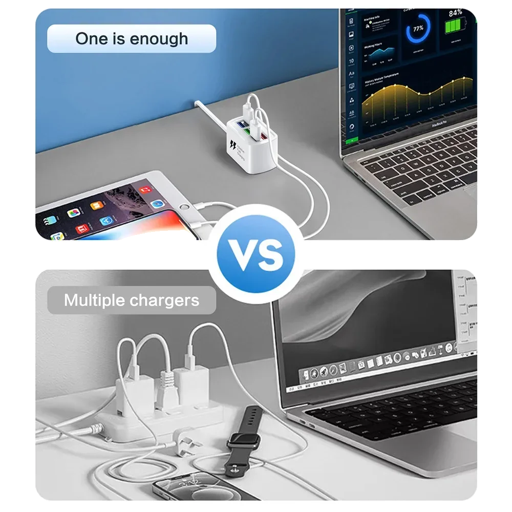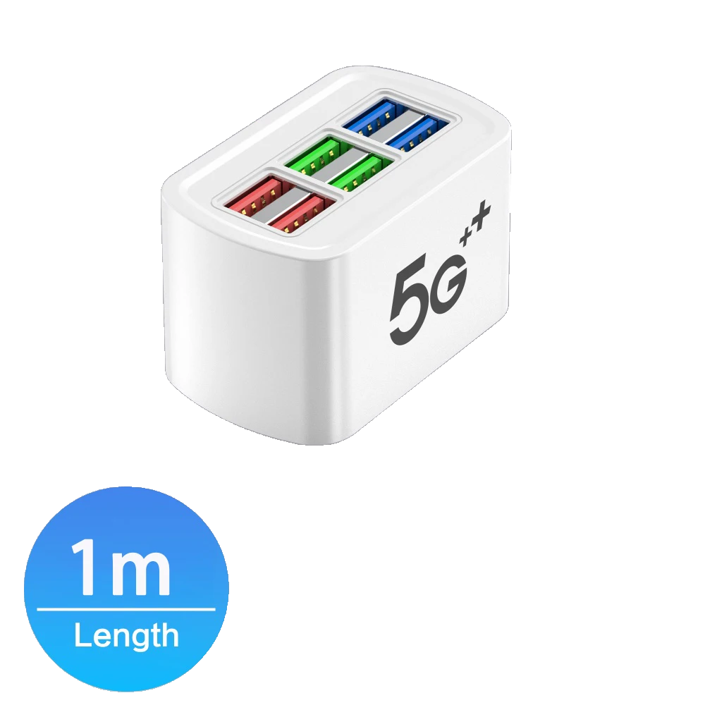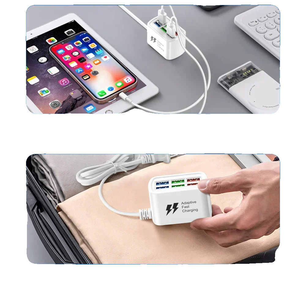 Carregador USB rápido 6 em 1 Power Strip Estação de carregamento de mesa Carregamento rápido 1m Cabo USB HUB Adaptador Tomada para iPhone 16 Home